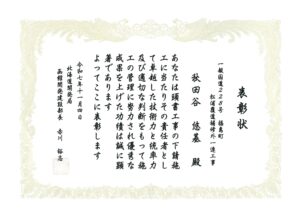 以上の観点から選考され、優良な工事の品質確保・工場に貢献したとして